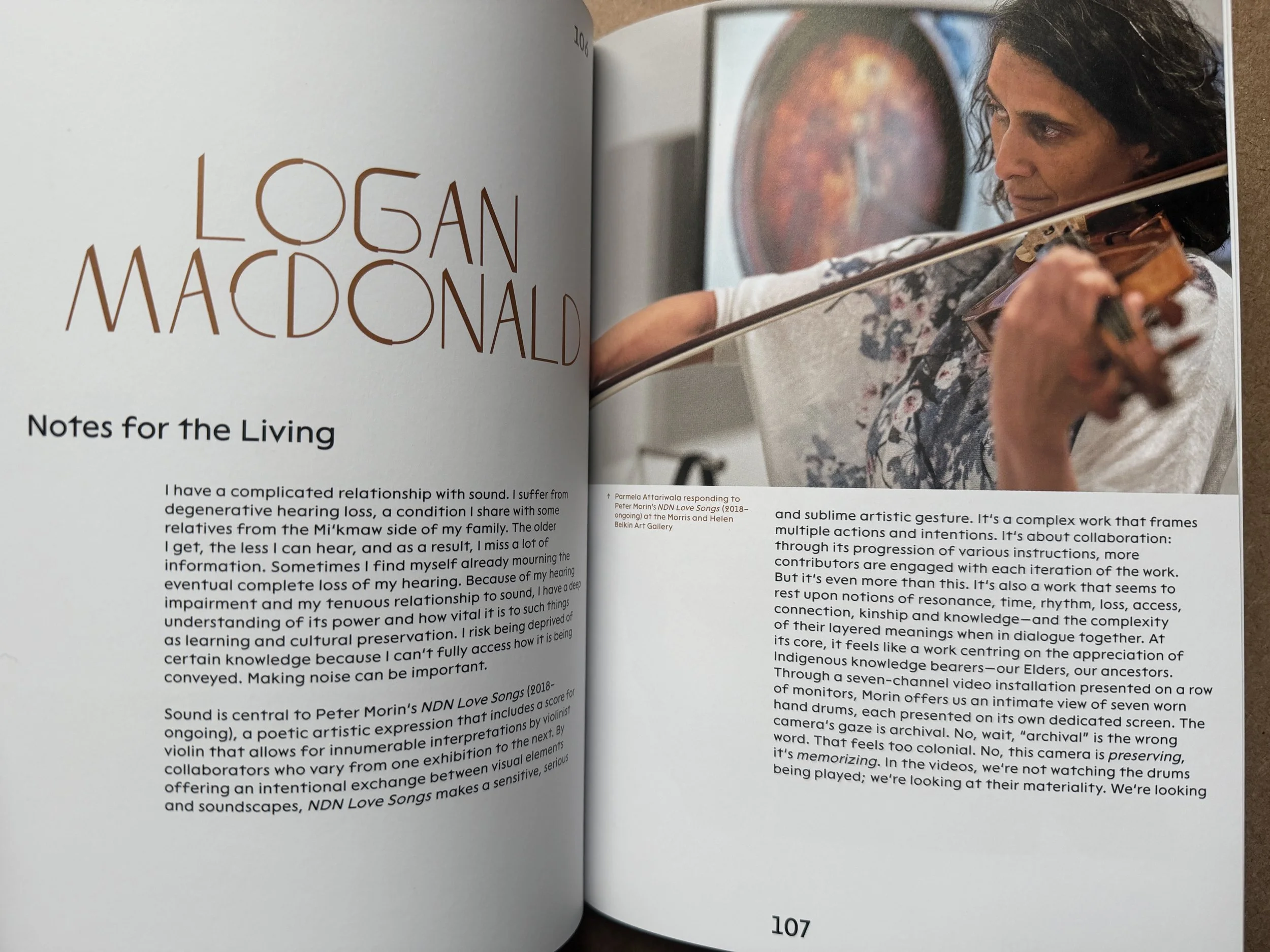 Citation: MacDonald, Logan. “Notes for the Living.” Listenings, edited by Candice Hopkins et al., Gund Gallery, 2025, pp. 106–109.